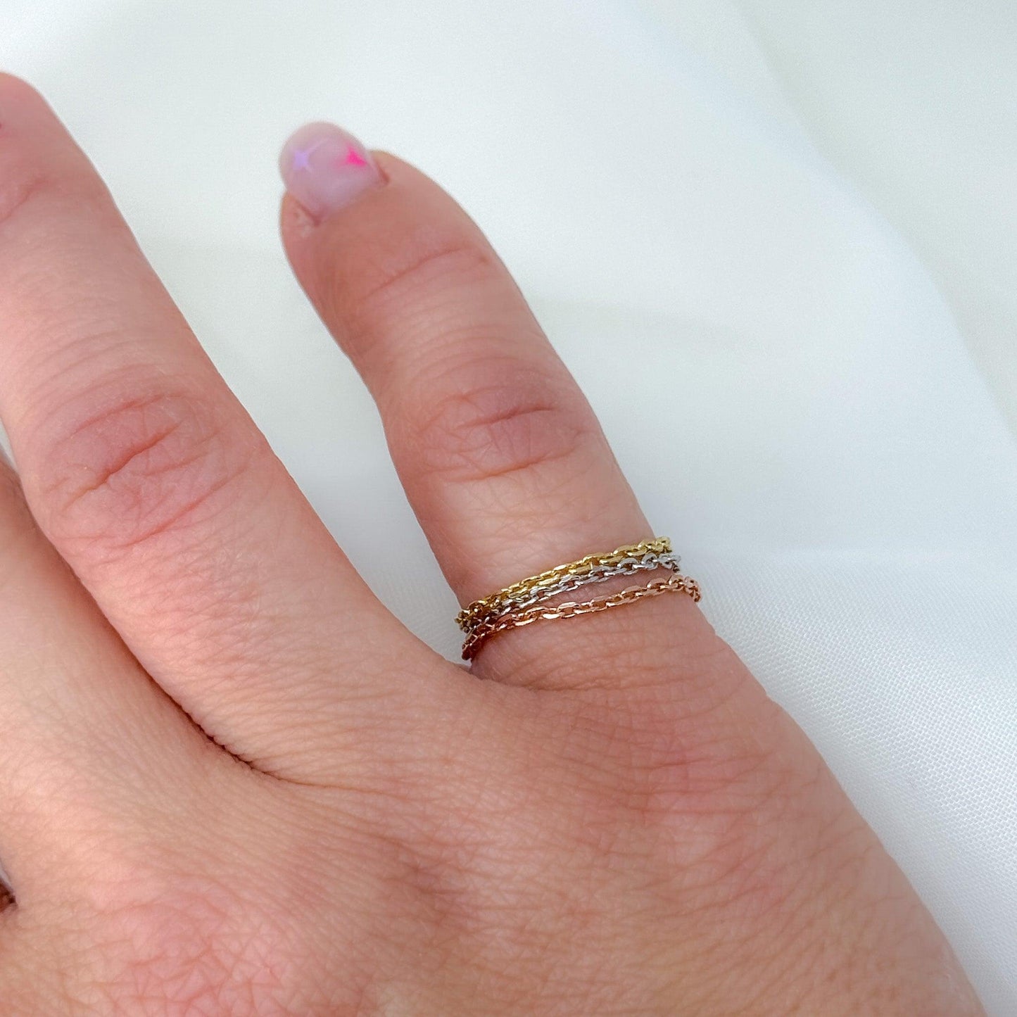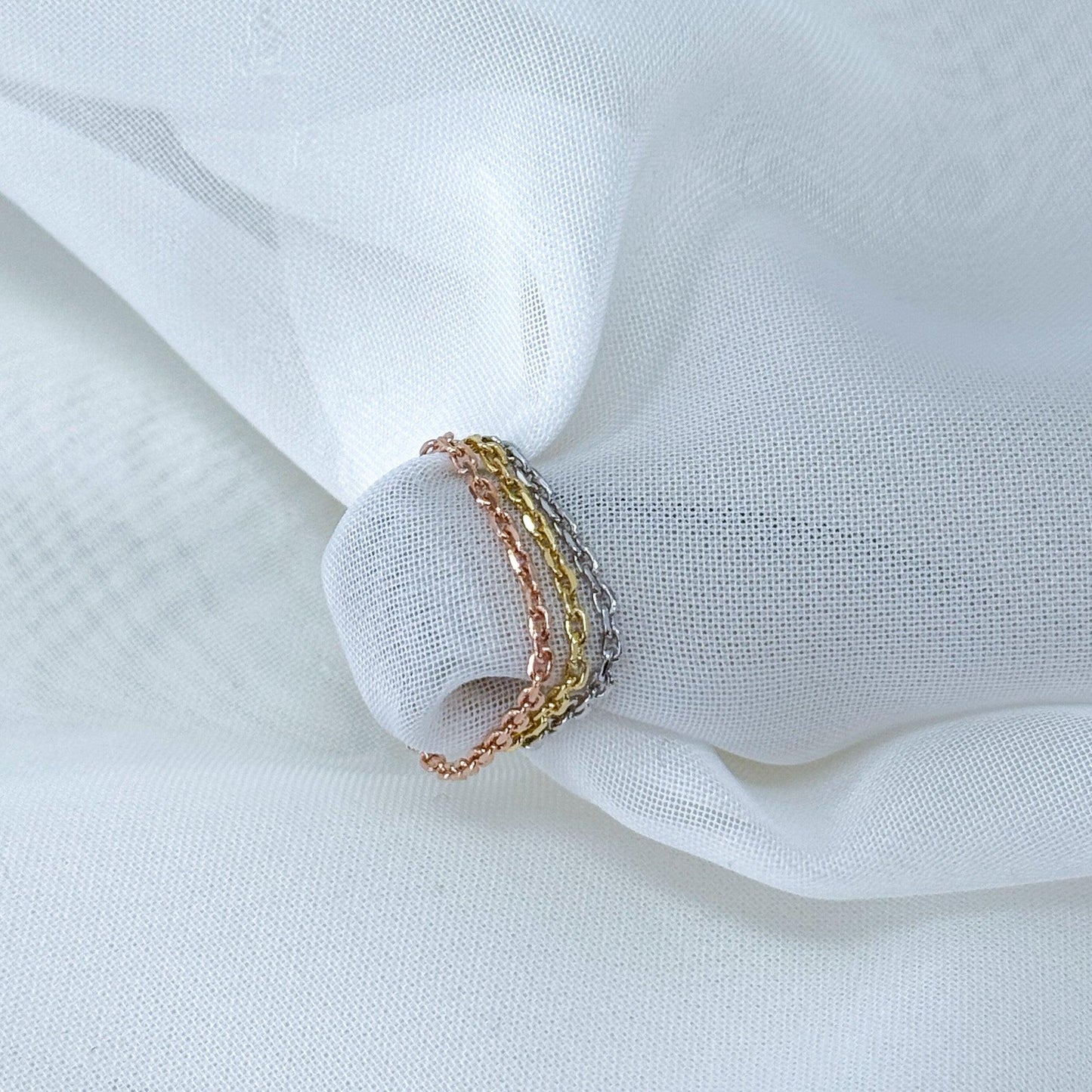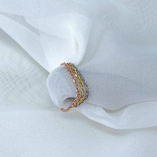 Anello fedina catenella sottile rosè - argento - oro giallo