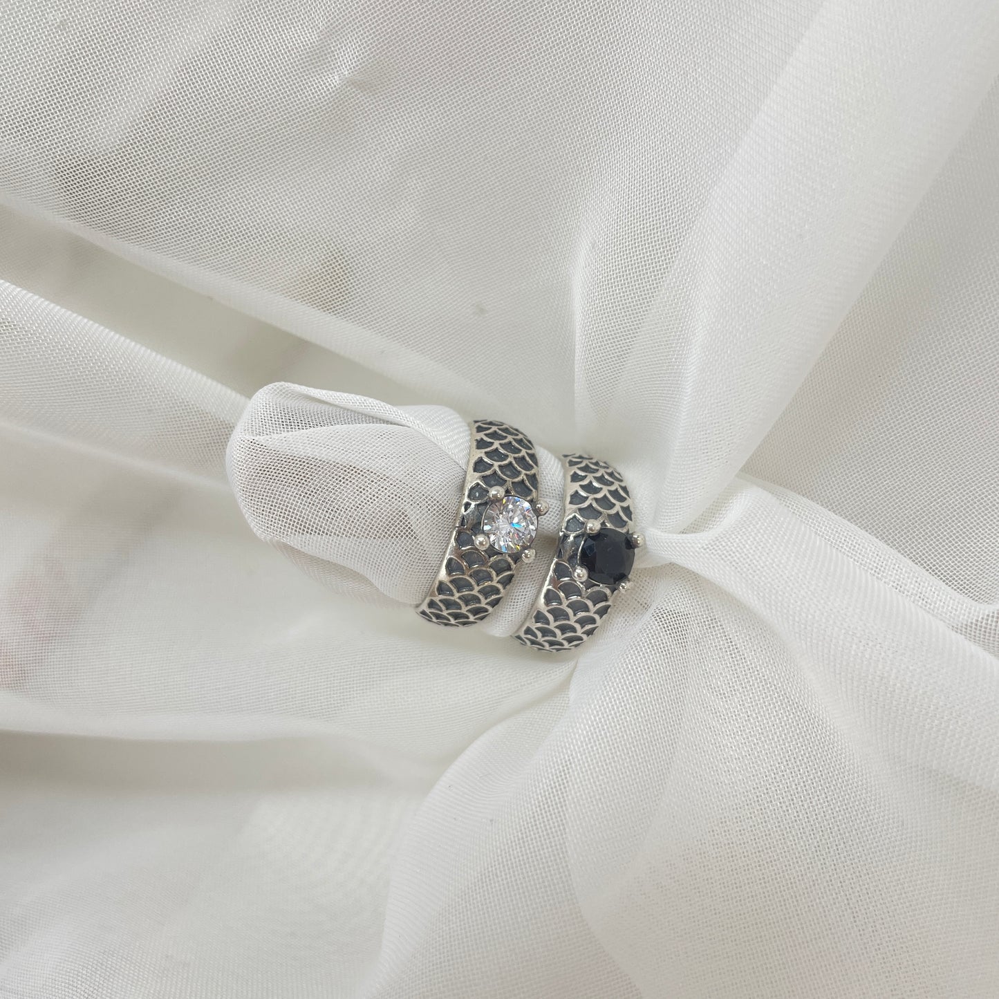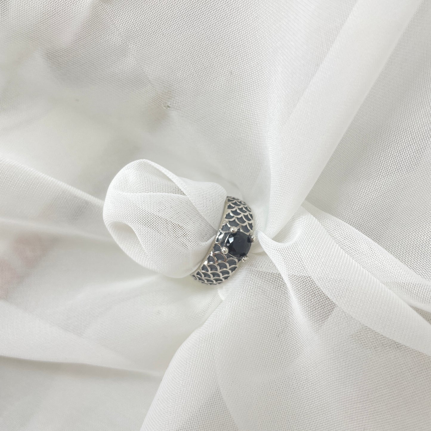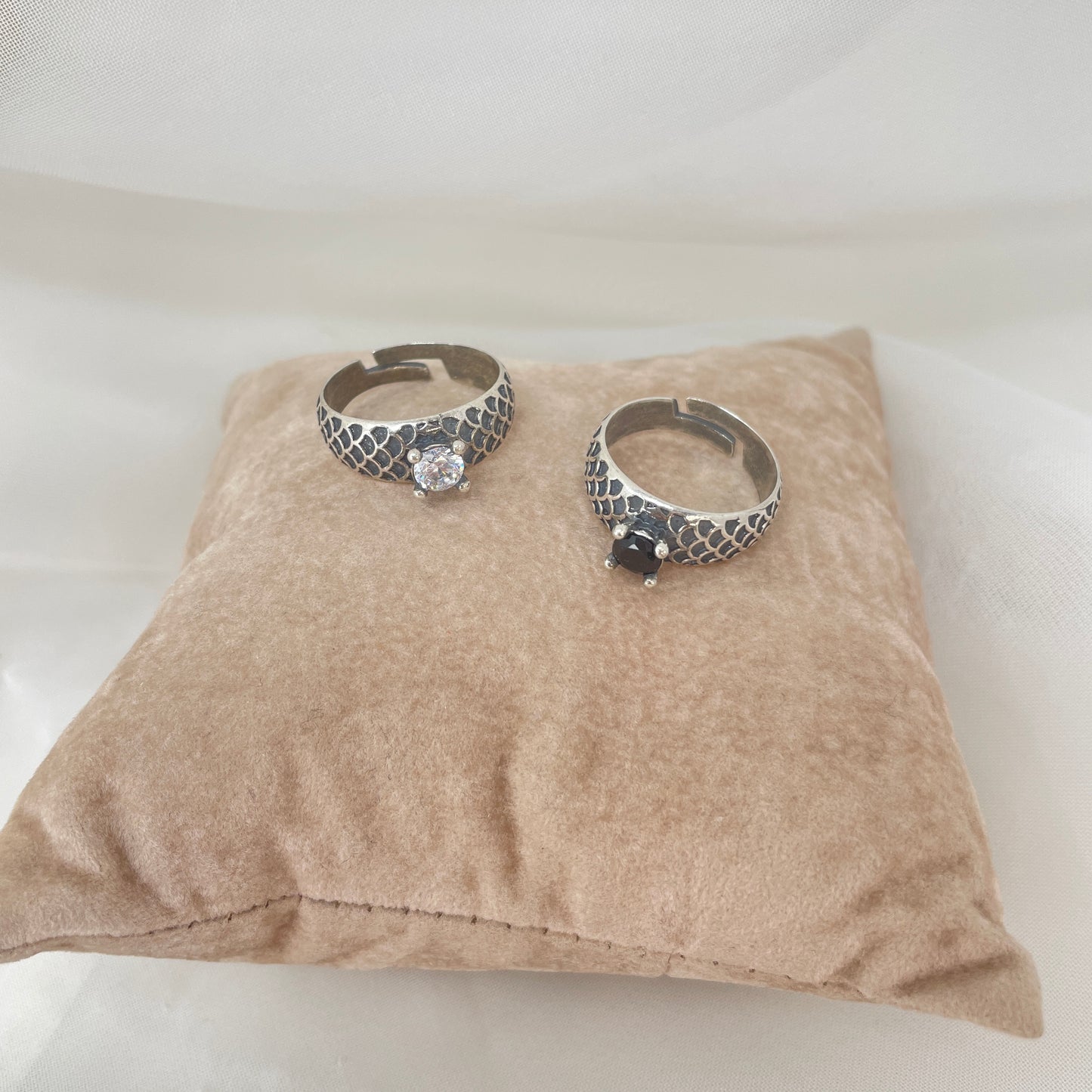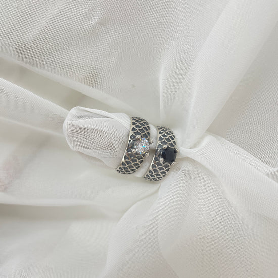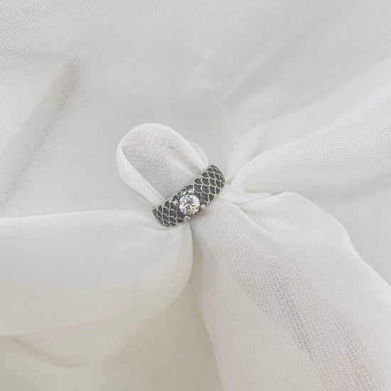Anello fedina argento anticato regolabile con punto luce nero o bianco.